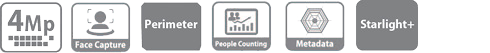 > WDR (140 dB), Day/Night (ICR), 3D DNR, AWB, AGC, BLC