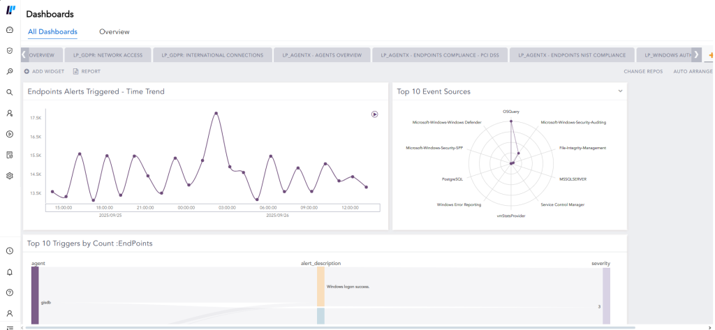 Logpoint SIEM aggregates logs and event data generated across devices, applications, and endpoints throughout your infrastructure.